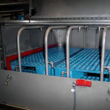 Lavadora de piezas para contenedores y bandejas de plástico